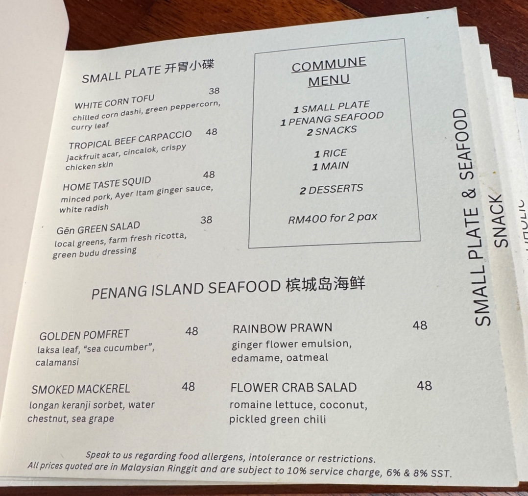 Welcome to Communal Table by Gen 根, a unique dining destination located in the heart of George Town, Pulau Pinang. This restaurant masterfully intertwines passion with culinary artistry, offering a vibrant setting where diners can enjoy meticulously crafted dishes. The standout item on the menu is the Flower Crab Rice, a delightful experience rich in crab flavor that truly showcases the chefs' creativity. Alongside, the White Corn Tofu serves as a flavorful starter, while the Golden Pomfret surprises with its delightful tartness.